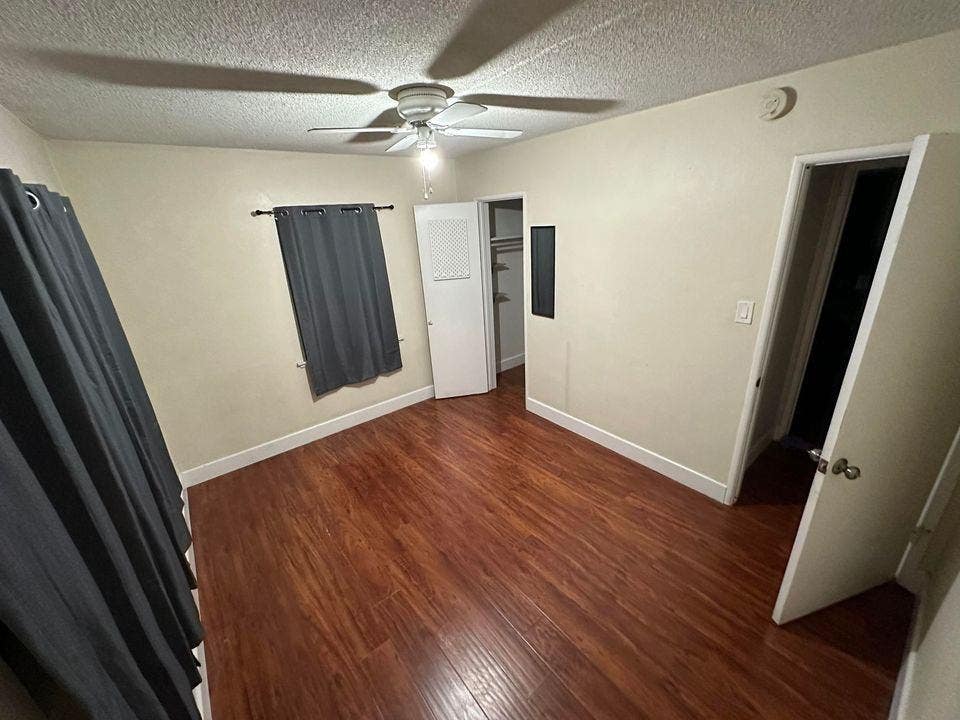 1 roomThe master bedroom is about 15ft by 17ft. 2 closets in the room. Bathroom and AC unit is included in the bedroom. The room does come with blackout...