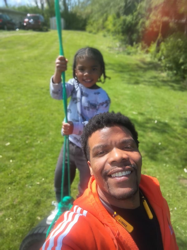 Me and jr. On the tire swing