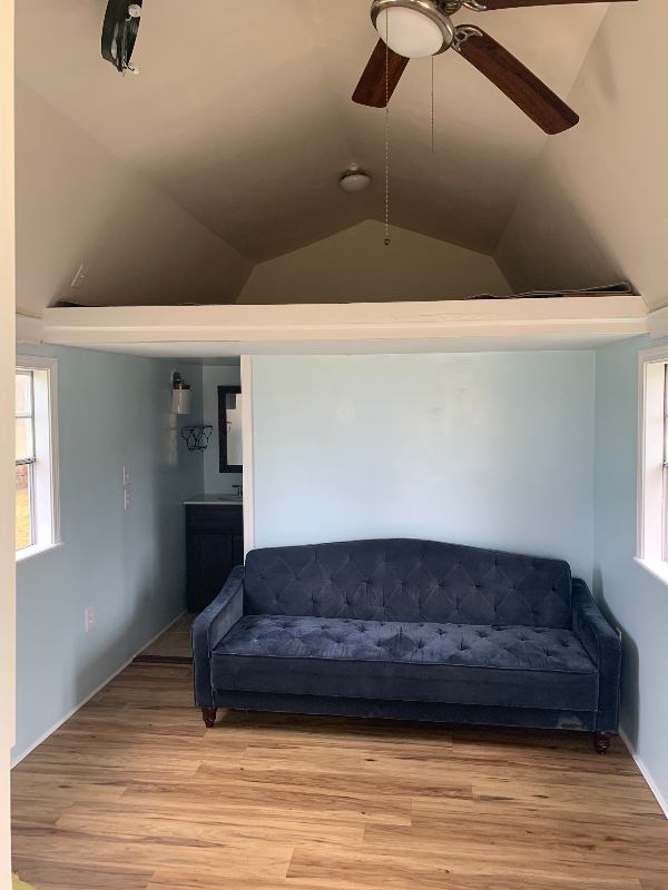 Tiny cabin with covered porch, sleeping loft, storage loft, kitchenette, standup shower, air conditionerheater, and land for garden, animals. Background check, credit check, income verification & references required. Security deposit will be refunded in full if you leave the place clean like you will receive it. $ pet deposit if you have a pet. You will be sharing the driveway and land with other tenants, so considerate, responsible, clean and sober only. No smoking. No drugs. Animals are fine as long as you do not disturb the other tenants. I pay wellwater, garbage, lawn care and septic. You pay Southern Pine for electric. You get your own wifi. Sleeper sofa furnished if you wish, or I can take it out.