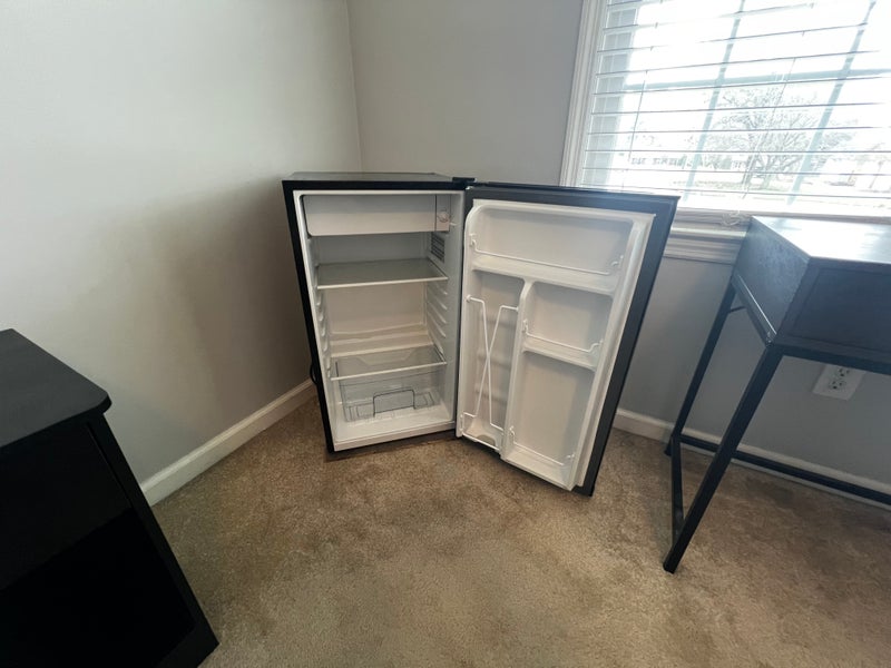 Room features: • Furnished bedroom • Bed • 55” TV • Dresser and nightstand • Work desk • Closet • Mini-fridge