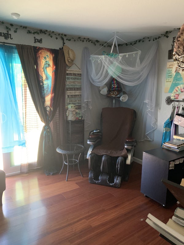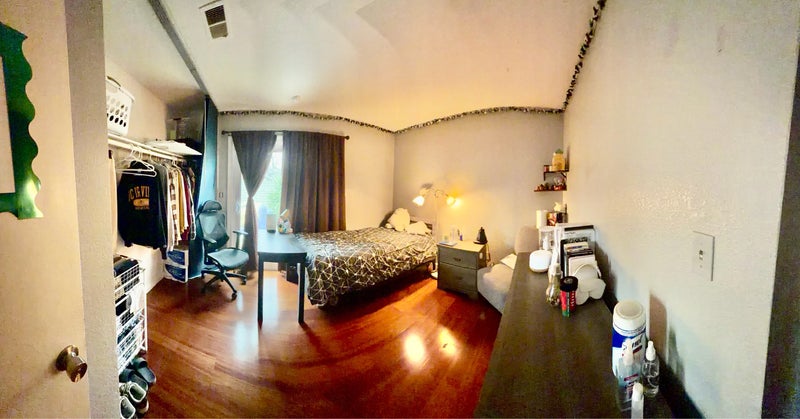 The Room: The available room is medium-sized and currently furnished with a twin bed (though it can comfortably fit a full). It includes a 6-drawer dresser, a nightstand with a TV, and a generous long closet. My favorite feature is the sliding glass door that leads directly to the backyard!