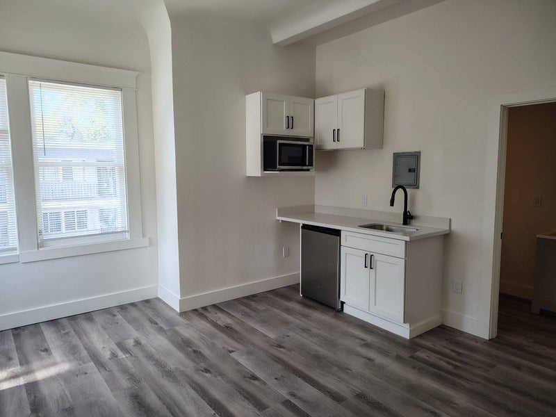 This is not a typical SRO. Super clean and quiet. Nicely done updated spaces. Lots of Light! Kitchenette in every room. Appliances provided. Needs you ! and your Bed and comfy stuff. We have Monkeybrains Wi Fi avail at $35/mo. Utilities atr $150/mo. BBQ area and garden space. Off street parking in the gated lot is $100/mo. OPEN HOUSE for viewing Firday 5:30pm to 6pm and SATURDAY 5pm to 6pm Applications at our Open House. Have your space like it is an apt. Very affordable living.