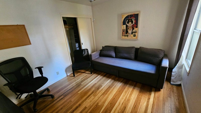 My roommate and I are looking for a third housemate to move into this unit with. We are two women in our mid-twenties. The unit has a shared backyard and an in-unit washer and dryer. I've included a photo of the room and the house itself, please message me if you're interested and for more photos!