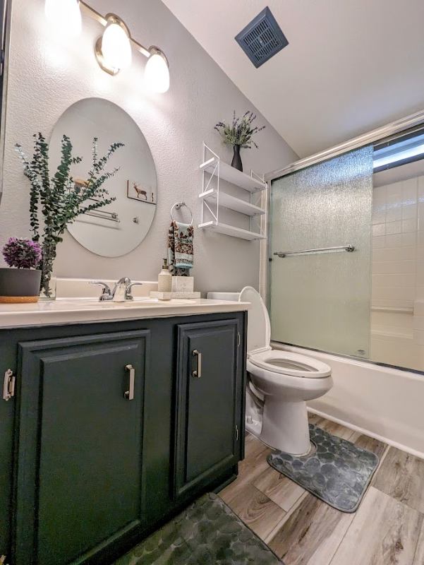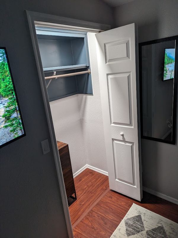 Luxurious queensized bed with blackout blinds for uninterrupted sleep Spacious dresser and bench with shoe rack for organized living Closet storage and digital alarm clock for your routine Lamp with USB charging ports and dimmable ceiling fan for ambiance K smart TV and dedicated workspace for entertainment and productivity Modern Southwest decor for a relaxing atmosphere Shared Bathroom