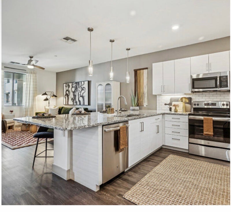 Photos are from the apartment community website, as I recently moved in. The layout, finishes, and features are exactly the same, and the apartment is in the process of being fully furnished and set up.