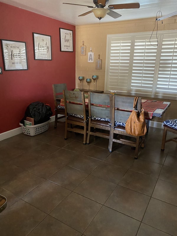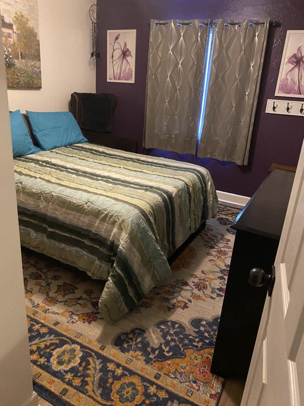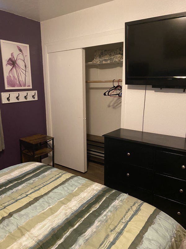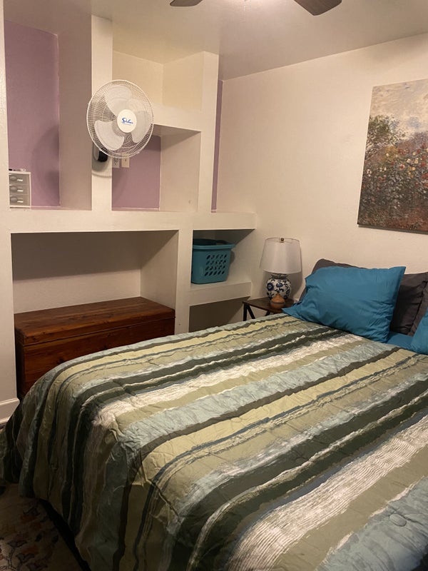 I am a 58yo professional female. I work full-time and go to school part-time but it will soon also be full-time. I am friendly, easy-going but also very outspoken. I treat others as I would like to be treated and would like a respectful roommate. I'm very clean, but I also live here and I expect normal cleanliness from a roommate. Essentially, my home does not come with maid service. My home is a very quiet and calm environment except when family comes to visit, then it gets fairly loud and messy because there would be many kids involved in the visit. You must like kids and animals. I have 2 very friendly dogs once they know you. I also have 2 teenage granddaughters who get dropped off at my house every day before school and they come home after school until their parents pick them up. They are nice, respectful kids. I spend a lot of time at my computer studying. I do smoke but NEVER in the house. When you are my roommate, you become part of the family when they come to visit. Visits don't happen a lot, but we're a friendly bunch and you are part of the family when they are here. I just want a nice roommate, preferably male, but not completely opposed to the right female. I'm sorry, but I cannot offer a private bathroom. Will answer any questions upon inquiry. Willing to make reasonable changes to the room. Roommate would also get their own code for the alarm system. In 7 years, the only people who have set the alarm off are family, lol. Full-size patio, BBQ, and pool. Panoramic wifi, Firestick tv. I do have a garage but it's storage at this time. Off street parking, large driveway.