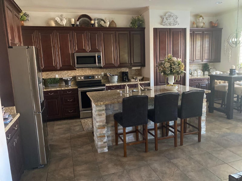 Home is 3,775 SQ feet 5 bedrooms a 4 full baths I have 2 rooms to rent. 3 living rooms , 2 refrigerators , pool outdoor kitchen. Holds 3 cars.