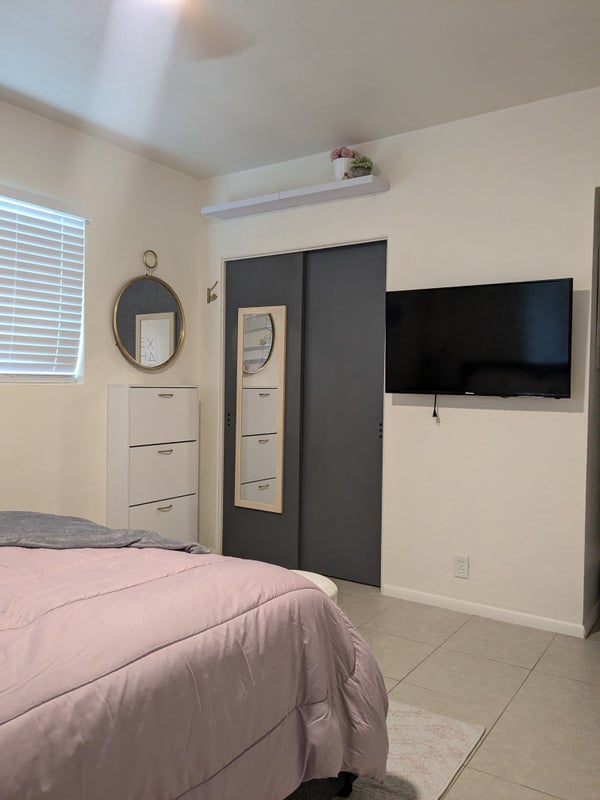 Fully furnished private room for rent in a 3bed/2bath house. Room has lots of storage including closet with sliding doors, under bed storage, shoe storage cabinet, fan, tv with Roku setup (please login to your accounts), and bathroom with lots of cabinet storage. Street & driveway parking available, internet included! Open concept house with separate laundry room and backyard patio and huge yard with shed. Our home has a modern aesthetic with a mix of high and low decor with a lot of natural light. Located in Arcadia Lite, we are close to a public park, the 202 & airport, a local library, and the local watering holes are The Bar and Zipps. A street north on Indian School is Century Grand, Whining Pig, Zipps, the Stand, Becketts Table, and more! Close to Biltmore and Esplanade Shopping Center, Costco, Target, etc. About 10 minutes from downtown, Scottsdale, and North Phoenix.