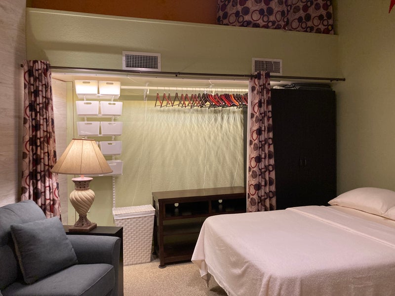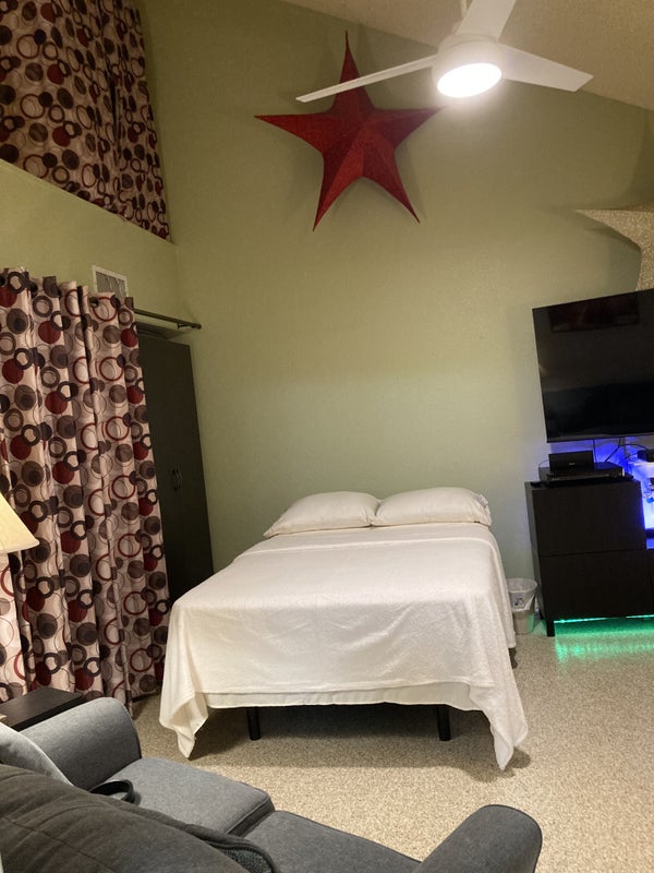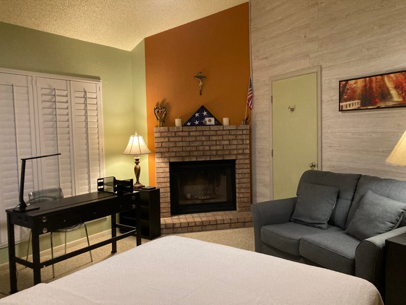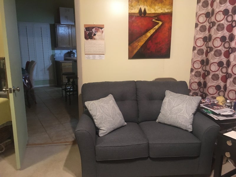 Large bedroom furnished. Desk with two chairs, loveseat to relax & watch tv. Closet with multiple forms of storage. An armoir for additional storage of clothing and valuables. High speed internet, cable & streaming services. Everything kitchen related is shared. Washer & dryer is upstairs. I'm the landlord & I do live here. Attentive to any needs & situations that may arise. One other tenant senior male lives & works from upstairs. We are close to major mall and many other amenities. Can be rented weekly or monthly. Stay as long as you want. Prefer one tenant only. No pets .I have two cats but they live in the patio room and not in the house. No parties or stayovers. Though younger people are welcome both of us here are seniors.