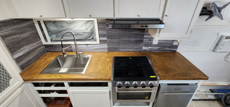 New Kitchen Appliances, New Epoxy-over-Timber DF#2 countertop, New reversible Vent Fan/Skylight, Honeywell Dishwasher, Frigidaire Refrigerator, New Moen Disposal w/ Air-Switch, New GFCI outlets, New Electric Heater, (2) New Ovens including SS Convection, Micro Air-fryer, and Gas Range, New 40" TV Mount, New Water-proof StainMaster Flooring, and Double-layered Underlayment throughout.