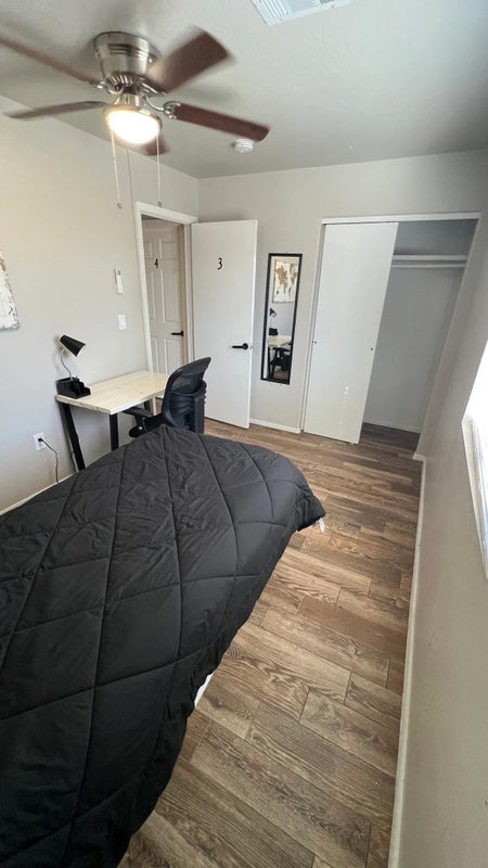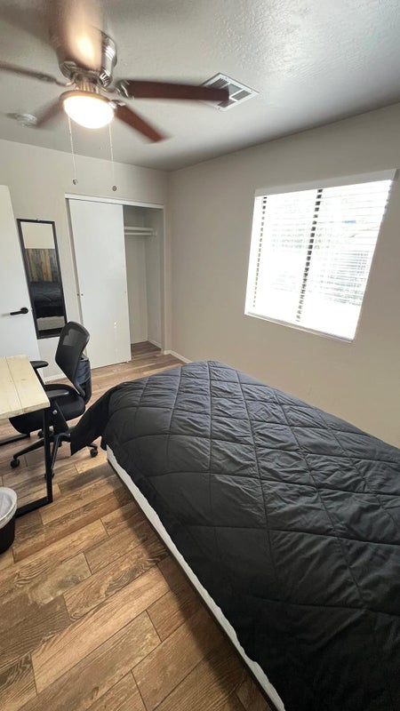 Rent $ Deposit $ Criminal Background Check Application $Private bedroom with optional furnished packaged with a full size mattress, bed frame, bedsheets, headboard, nightstand, desk and chair.