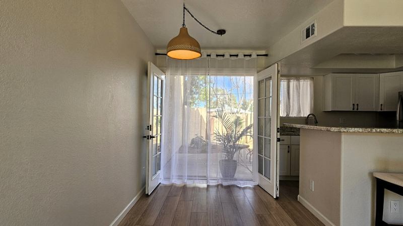 This lightfilled endunit townhome features vaulted ceilings and a comfortable bedroom, .bath layout with a fenced backyard.