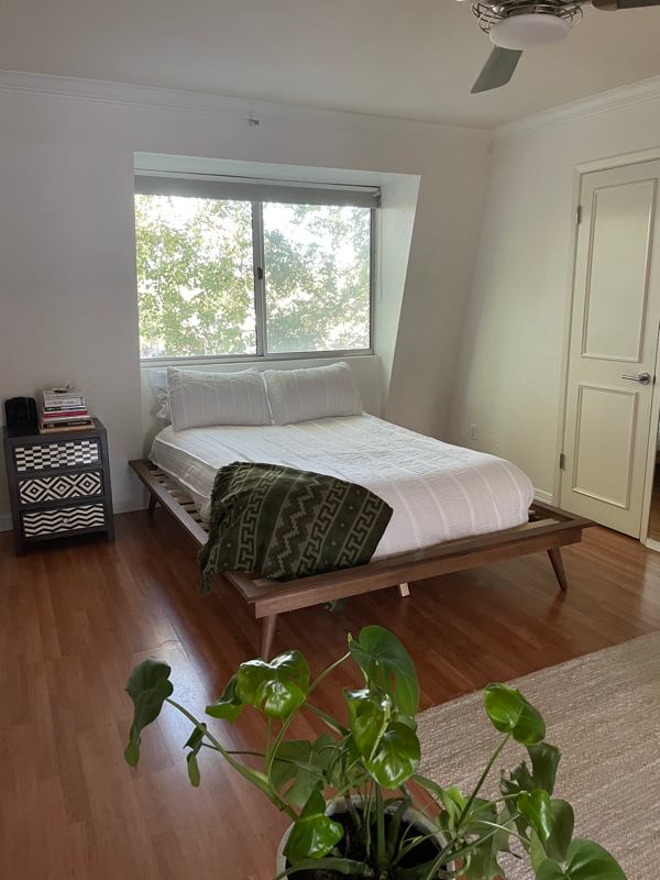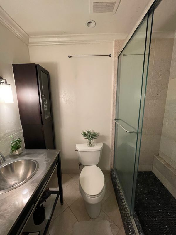The spacious bedroom features a walkin closet, large window, and floortoceiling mirror. The bathroom includes a walkin shower with an adjustable shower head, and the unit also includes its own washer and dryer for added convenience. The kitchen is equipped with stainless steel appliances, granite countertops, designer cabinets, and a custom backsplash.