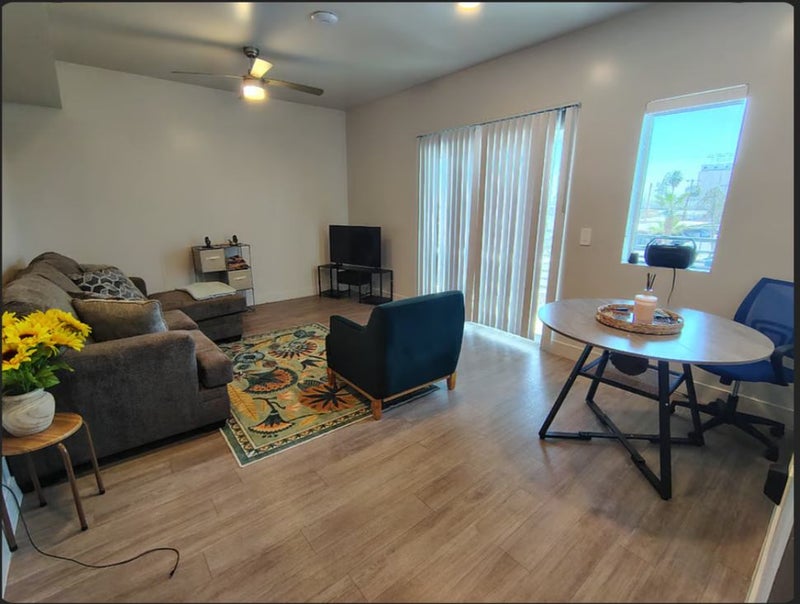 Fully furnished 2 bedroom, 2 bathroom apartment available for rent in central Mesa. This bright, comfortable unit features an open living area with smart TV and dining space, a fully stocked kitchen with cookware and essentials, in-unit laundry, high-speed Wi-Fi, assigned parking, and private balcony. Residents also have access to community pool and fitness center. Utilities are included. Minimum 1-month stay. Security deposit, cleaning fee, and application fee apply. Ideal for traveling professionals or anyone needing ready-to-move-in housing near employers, medical centers, shopping, and dining.