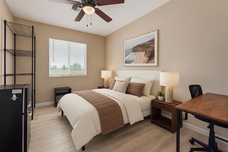 ποΈ Each bedroom conveniently has its own mini fridge π§, smart TV πΊ, and personal desk/work space π»!