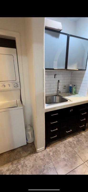 1 bedroom, 1 full bath, living room with pull out sofa bed, modern kitchenette and full washer and dryer.