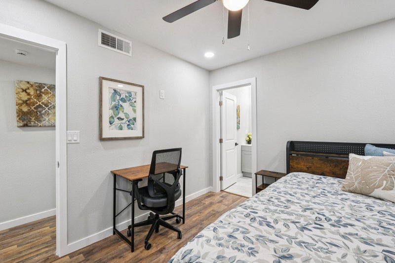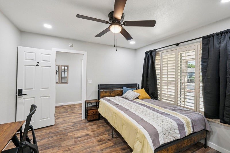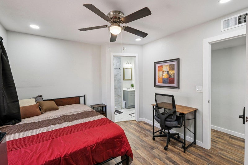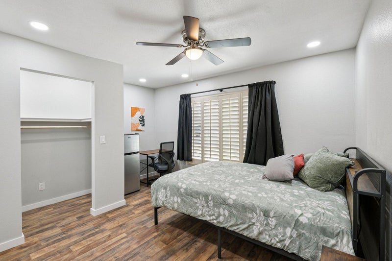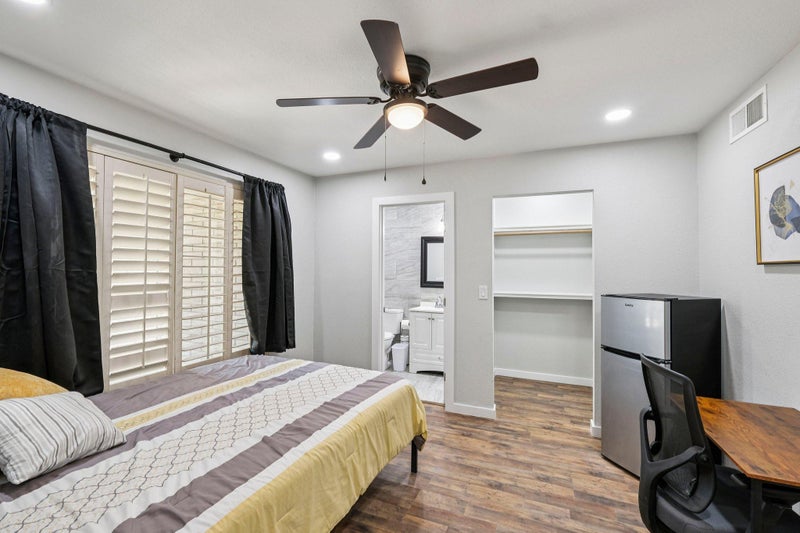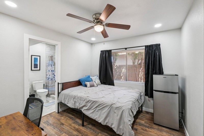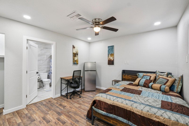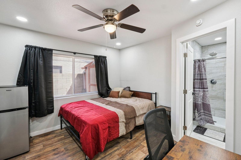 Private furnished room for rent. Make this beautiful, newly remodeled, 8 bedroom (all suites with their own bathroom), house your new home today! All bedrooms have smart locks with personalized codes, a queen size bed, large fridge (7.5 cu. ft. with freezer), nightstand with charging station, work desk with upgraded office chair and most rooms have oversized closets for extra storage space and convenience. There are two sets of stacked washingdrying machines for laundry inside the house. The kitchen comes equipped with a fridge, sink, oven, stovetop, microwave, pots, pans and cooking utensils....making it the perfect spot to whip up a meal and enjoy. This home has plenty of parking spaces and is close almost everything you need for comfortable daily living. The neighborhood is quiet and conveniently close to grocery stores, fast food, shopping centers, public transportation and much more. Professionally managed, monthly cleaning of the common areas, bathrooms and landscaping upkeep. Bed linens are not provided so please bring your own. $3 per week. Room rate includes all utilities, high speed WIFI, free laundry access, and Teladoc service. PROPERTY ID: 9