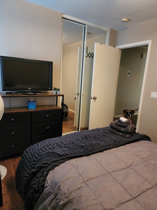 Owner lives in house with 1 dog. House with a pool in backyard on a dead end street with a park. Kitchen and living is shared space. TV in guest room.