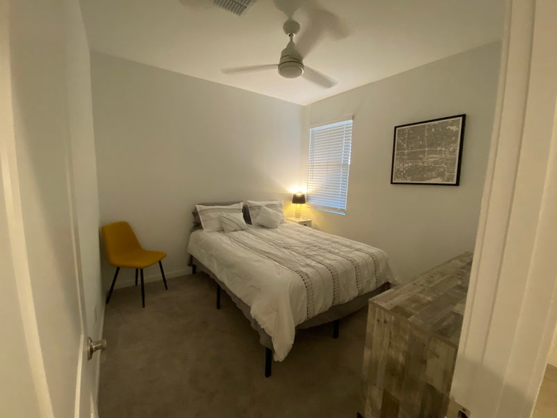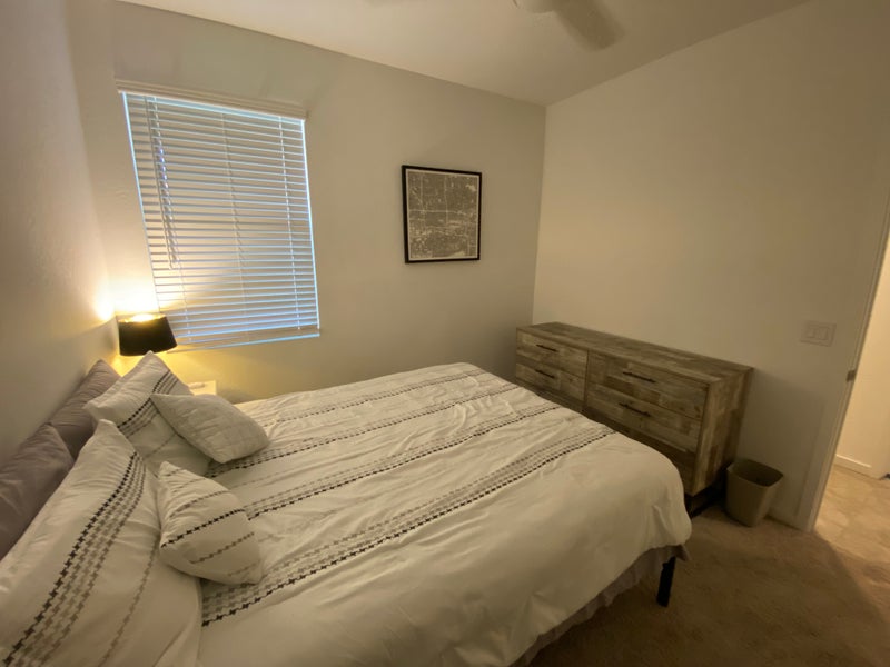 The 2nd bedroom includes a queen-sized bed, cable and Smart TV (can be added), a ceiling fan, and carpeted flooring. The bathroom has a deep tub/shower for everyday convenience. The property is located near local restaurants, coffee shops, South Mountain Park, a casino, a golf course, and a large community park. Dignity Health Laveen is less than five minutes away. Get to pretty much anywhere including downtown Phoenix within 15-20 minutes.