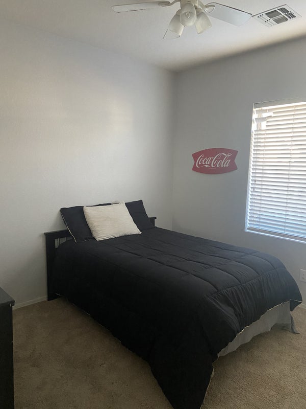 ✨ What’s Included: • Private bedroom (can be furnished with a dresser, night stand, TV) • Shared bathroom • Access to kitchen, living room, laundry room, patio, storage in linen closet and some garage storage. • Family-style environment