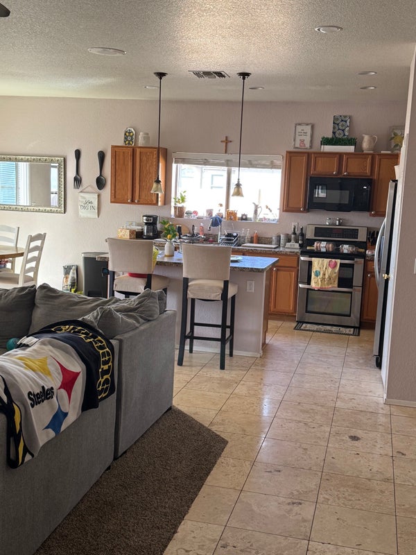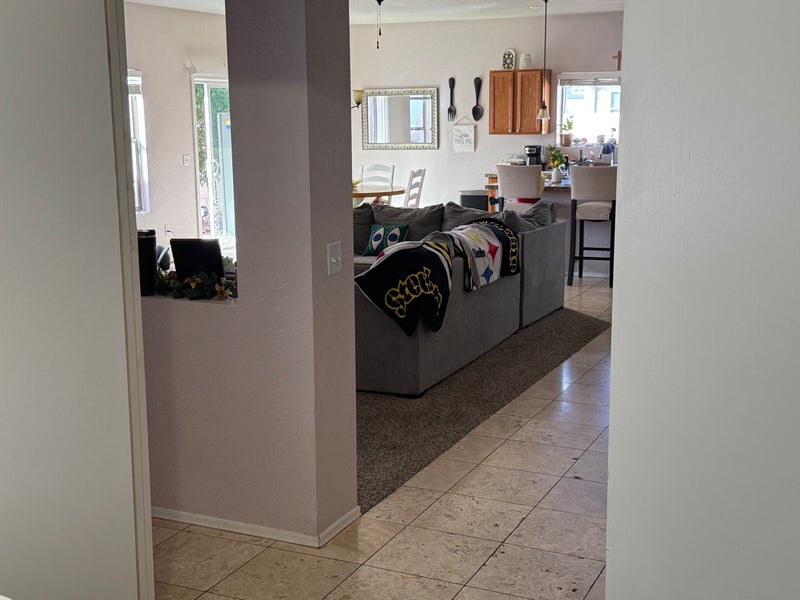 Nice room, private bathroom. Home has 2 living rooms, one is yours. Large space, open kitchen/dining.