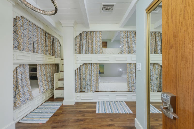 European-Style BedPods include bedding linens, full-sized luxury mattress, flooring space around mattress, built-in storage and shelving, in-pod dimmable lighting and USB. It's a bedroom in a bedroom! Balcony to watch the sunsets! Shower, large oval tub featured in the attached bathroom.