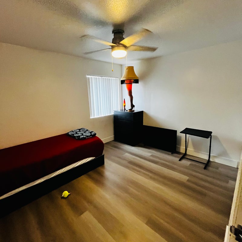 Extra Bedroom is available for rent unfurnished or furnished with Bew Bed, Dresser, Tv. Bedroom is 12' x 12' with addition closet that is 6' x 3'