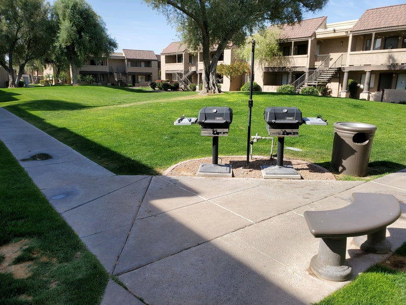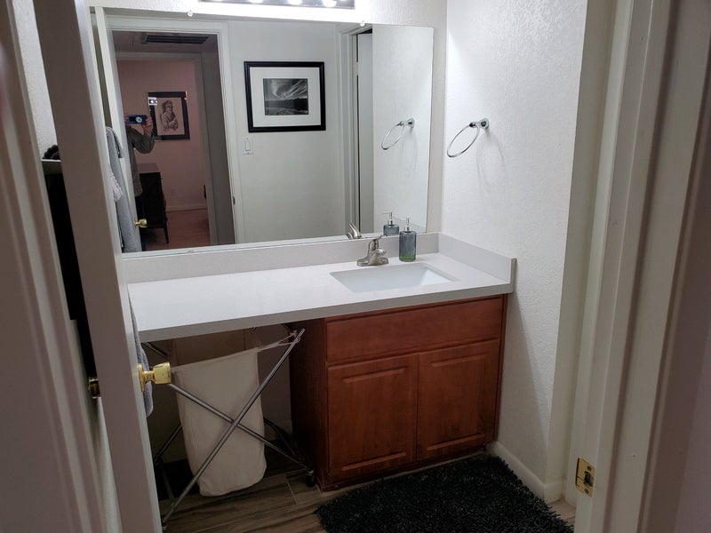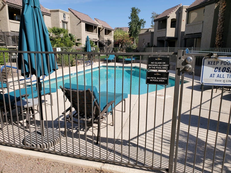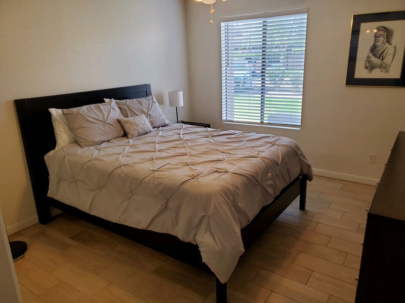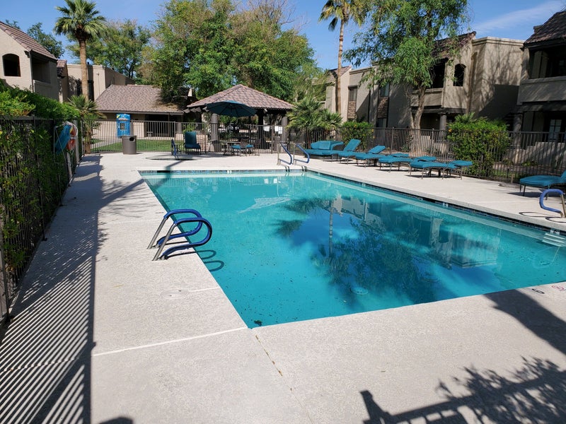 Bedroom with walk in closet and bathroom for rent located in a nice gated community in Scottsdale. The community has swimming pools, hot tubs, gym and club house. The condo has a full kitchen and washer/dryer in the unit.