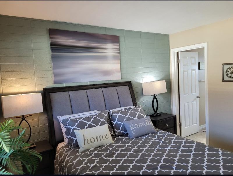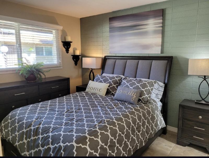 Available April . Completely furnished with brand new bedroom and living room furniture! Newer appliances include microwave range dishwasher refrigerator stainless steel sink upgraded faucets hardware lighting mirrors doors trim paint blinds all tile floors throughout! All you need is your toothbrush and your laptop. Queen bedroom with dresser and closet.