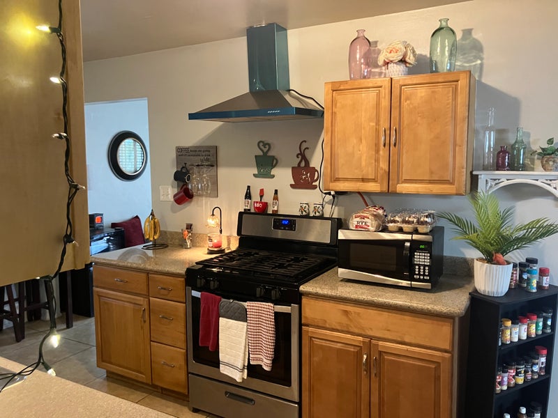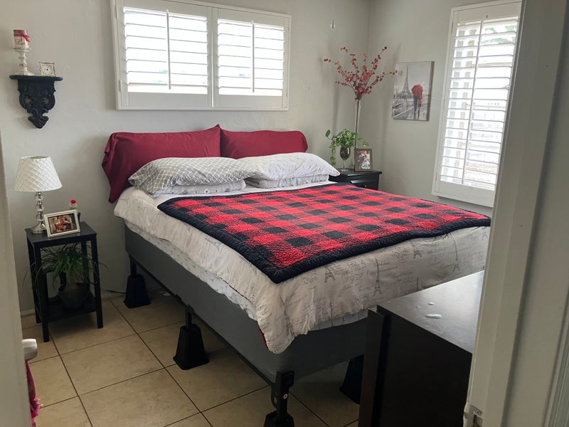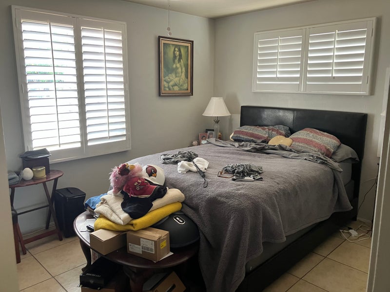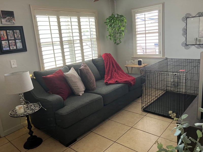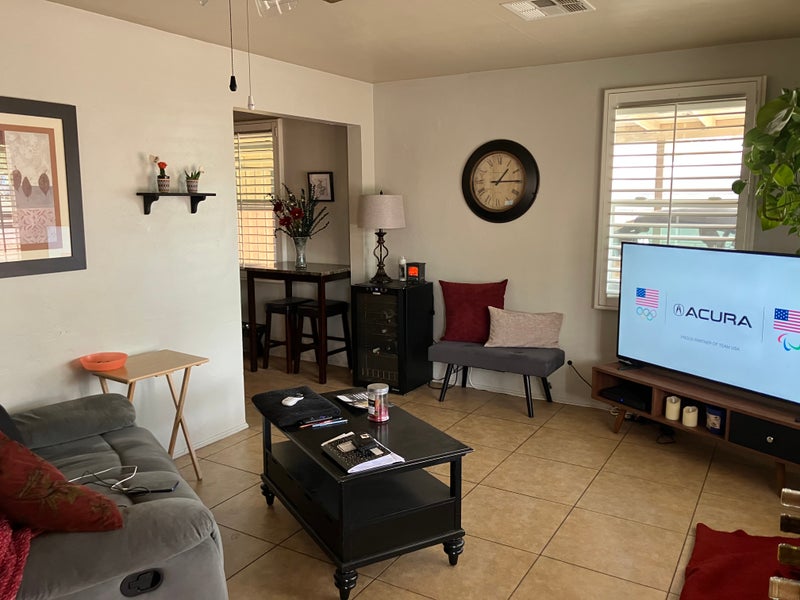 I have 2 bed 1 bath there are 2 living rooms so new roommate would get the large bedroom and a living room area with parking in driveway. And you would even have your own entrance into ur living room. Large front yard large backyard w storage space in back yard. I do have a dog which I love like my child so must like dogs. It’s not a large house but it’s very comfy and each roomie would have their own space if u want that. You have view of mountains and u can see the park from the house where u can play basketball and workout the just built a workout area. There will just be 2 of us. Pics are furnished but your 2 rooms would be empty for your things.