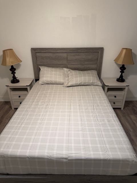 Upstairs Bedroom 1 (Furnished) – 13x10: $800 per month includes all utilities, internet, use of all common areas. Shared bathroom with bedroom 2. Small amount of extra storage space available. Security Deposit is $800.00. Rent is due on the 1st of every month and a late fee of $40 will be assessed on the 6th. Room includes Full Mattress/boxspring/frame – (2) pillows – (2) pillow covers - fitted sheet - flat sheet – (2) nightstands – (2) lamps - dresser - oscillating fan