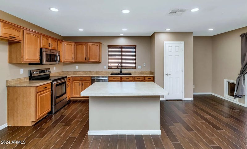 This home features four bedrooms, three full bathrooms, and a loft. If you enjoy cooking, the large kitchen area has plenty of cabinet space, stainless steel appliances and a convenient island to work from. If you enjoy spending time outside there is a large, covered patio. If you like to walk or jog you can take a leisurely stroll through the quiet and safe neighborhood. The prime location won’t disappoint, with shopping, services, and freeway access just moments away. Only 3.2 miles to the 60, 4.3 miles to the 101 freeway, 7 miles to the 303, 14 miles or a 20-minute drive to the Cardinals stadium, a 40-minute drive to PHX. Like golf? Willow Creek Golf Course is less than 2 miles away. If you have a lot of extra belongings that you need to store, there are (2) self-storage facilities less than 2 miles away. For grocery shopping there are (3) major grocery stores less than 4 miles away. The West Valley’s premier shopping destination, Arrowhead Towne Center features over 180 stores and is 5 miles away. The Towne Center also offers a large selection of restaurants.