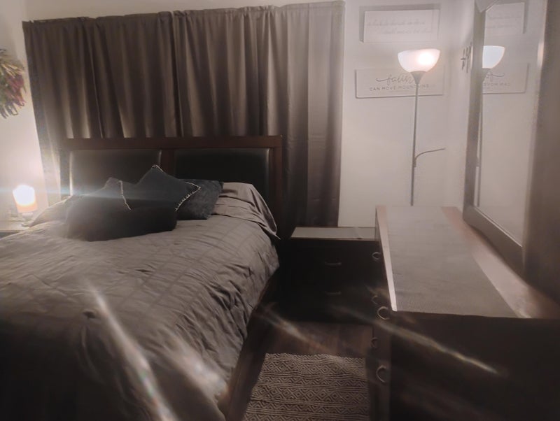 Nice clean home shared gas, electric, water, garbage .no laundry no pets parking spot. Roomates are respectful quiet. Home is clean neat as is parking yard area.