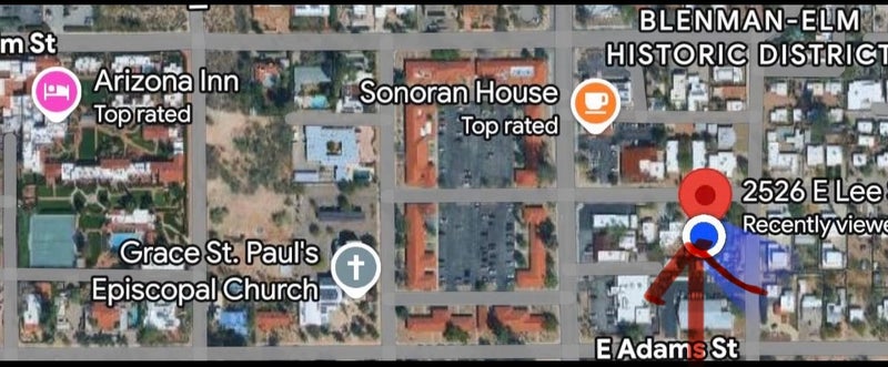 A+ location in historic BlenmanElm. Quarter the price of Arizona Inn (block over). Next to Roots Spa, Sonoran coffee house... Private, designated parking!