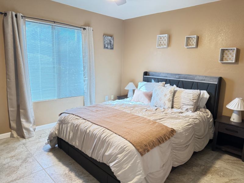 Welcome to our newly renovated, cozy bedroom condo. We invite you to enjoy our unit located within the beautifully maintained and gated community of Veranda Ventana. The spacious bedroom features a comfortable queensized bed, with a walkin closet for your convenience. The condo includes a fullsize washer and dryer, and a wellstocked kitchen perfect for preparing homemade meals or grilling at the covered ramada with natural gas grill. The community offers two pools, two spas, a fitness center, clubhouse, sand volleyball court, playground, and a green zone for you to explore and enjoy. Controlled Access Gated Community The location is excellent, with plenty of activities nearby. We would love for you to experience everything this wonderful place has to offer.