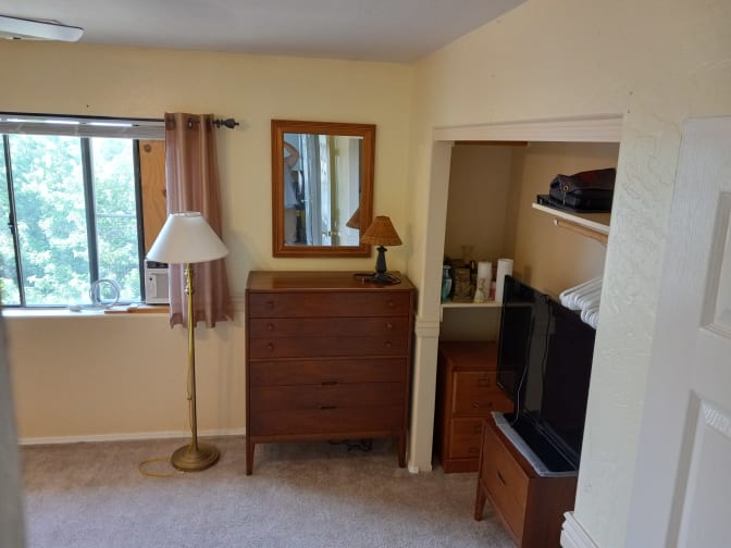 2 private rooms that each are apx. 12’x12’, each room also has a closet, and you would have your own private bathroom. Access to the kitchen, laundry facilities, there are curtains in the hallway that can be drawn for privacy for both rooms and the bathroom. Apx. 350 square foot off combined private living area with the bathroom and the kitchen dining room, living room, laundry room, and covered deck are abut another 650 square foot you will have access to. Off street parking is available. Fully furnished including a newer Queen size bed with an adjustable frame and there is a bit of extra room if you have some furniture. The rooms will not be available until February 15th at the very earliest.