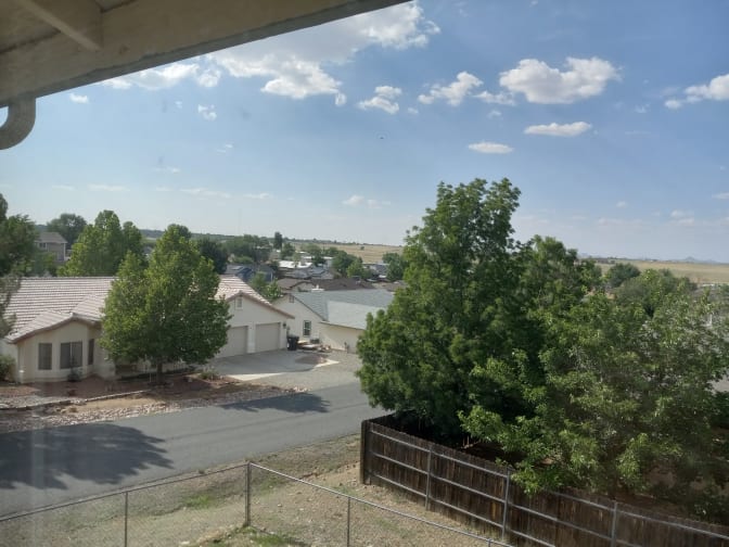 Once a month a maid comes in and cleans the bathroom and will vacuum your carpets and also does the floors in the rest of the home. Home owner is retired Veteran and as you can see the home is well kept and in a nice quiet neighborhood on the North side of Prescott Valley. From the deck and the window in one of the rooms, you can see Mingus Mountain, beautiful sunsets out by Granite Mountain, and out towards the North for many miles. Rooms are only available to a single tenant, one room could be a bedroom and another a private living room/home office/ workout room, whatever you want. You will be sharing the kitchen and such with the home owner, nobody else lives here and this is not a party pad, he is retired in every sense.
