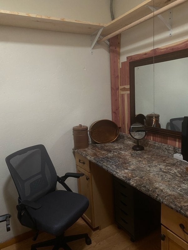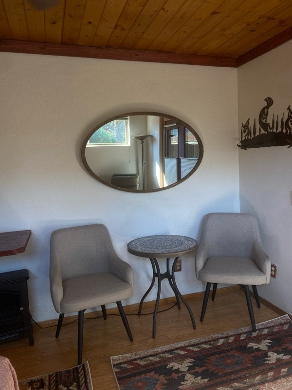Fully furnished with private entrance, private deck and private bath, well kept and very clean. Includes numerous kitchen appliances, double bed, recliner, table with chairs. Separate room with office deskmakeup stationstorage area. Located on side of home with WD located in back. Knotty pine ceilings, cedar closet, new paint job, ” TV with many streaming channels with High speed internet. Views from yard. Can sit and enjoy fountains, birds and wildlife. Prefer year lease but can negotiate less. Must have references and job or be able to prove income. This studio apartment is for person only. Please call no text or emails. $ monthly and $ deposit.