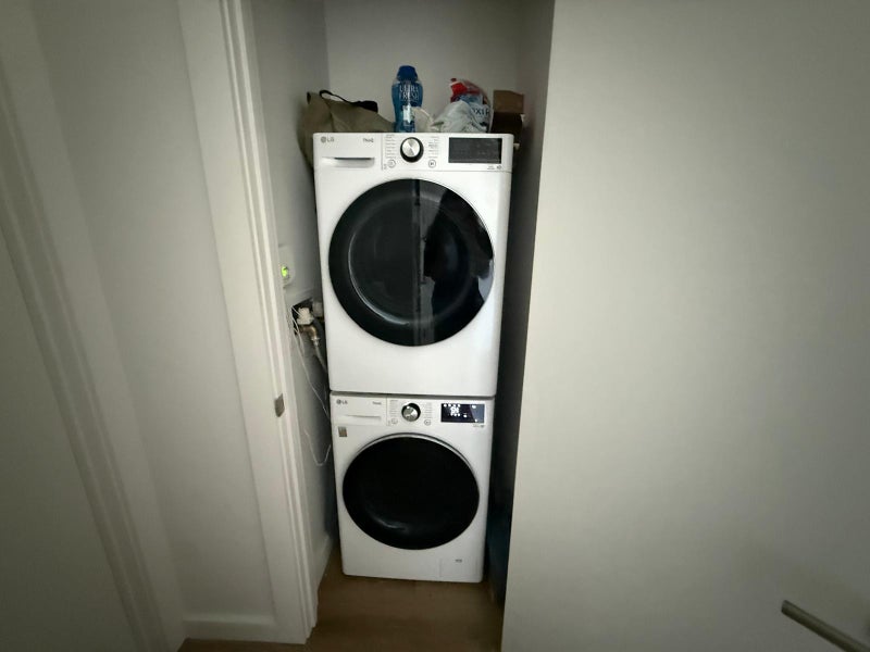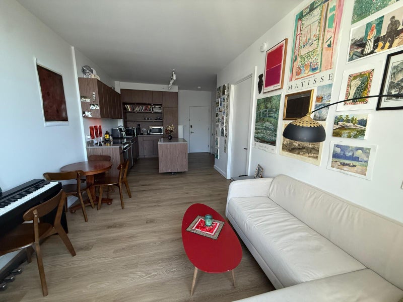 Apartment Features - 1 bedroom / 1 bathroom - Fully furnished (bed, couch, dining table, desk, etc.) - Large windows with great natural light + partial water/city views - Modern kitchen with island + full appliances - In-unit washer and dryer - Clean, modern finishes throughout