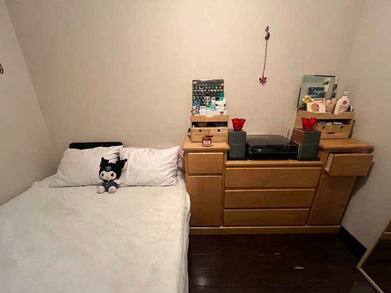 Large window with plenty of sunlight during the day and not street facing so very quiet and peaceful. Access to a modern kitchen, living room, and bathroom.