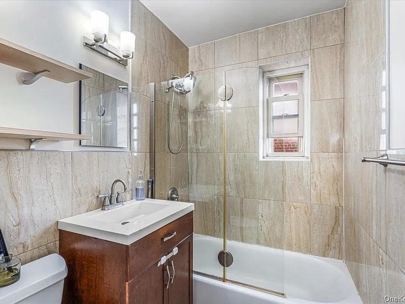 The oversized bedroom offers a peaceful retreat with built-in closets, abundant sunlight, and partial water views that add a special touch to your daily routine. The apartment also includes a tiled, windowed bathroom, hardwood floors throughout, and excellent closet space, ensuring both charm and practicality.
