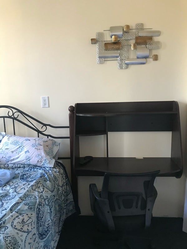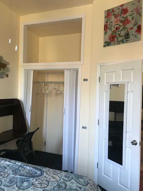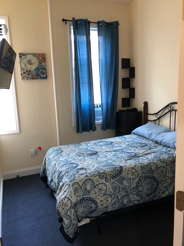 Large fully furnished room , Full size bed with Flat-screen Smart TV, dresser chest, 1.5 windows, wall desk & chair , ceiling fan , and a HUGE spacious closet with overhead storage for luggage