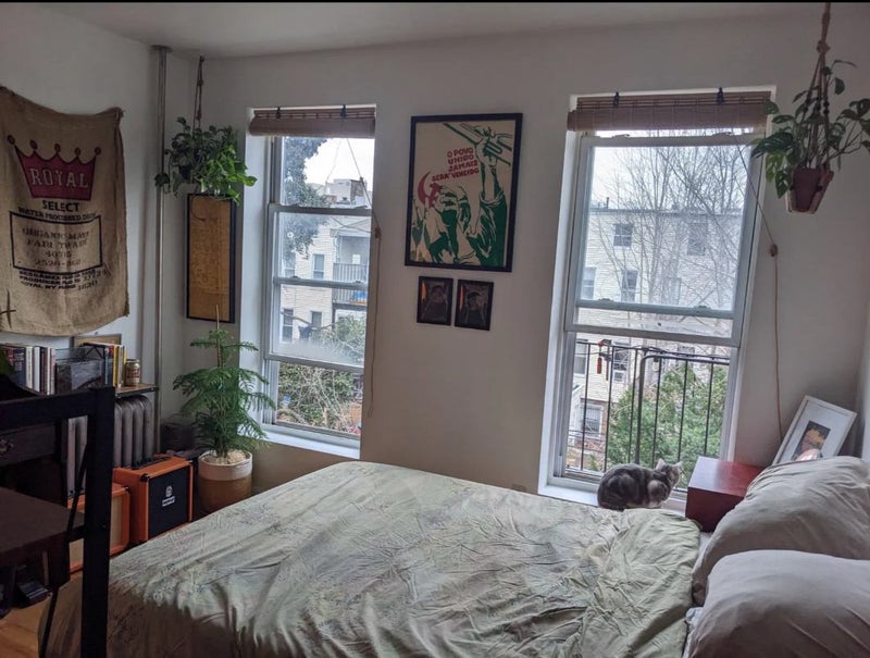 Up for sublet is a fully-furnished room in a two-bedroom apartment on the second floor of a 19th-century Brooklyn brownstone on a peaceful, tree-lined street. The building has only four units (with two below and one above) and the neighbors are all cool, young professionals.