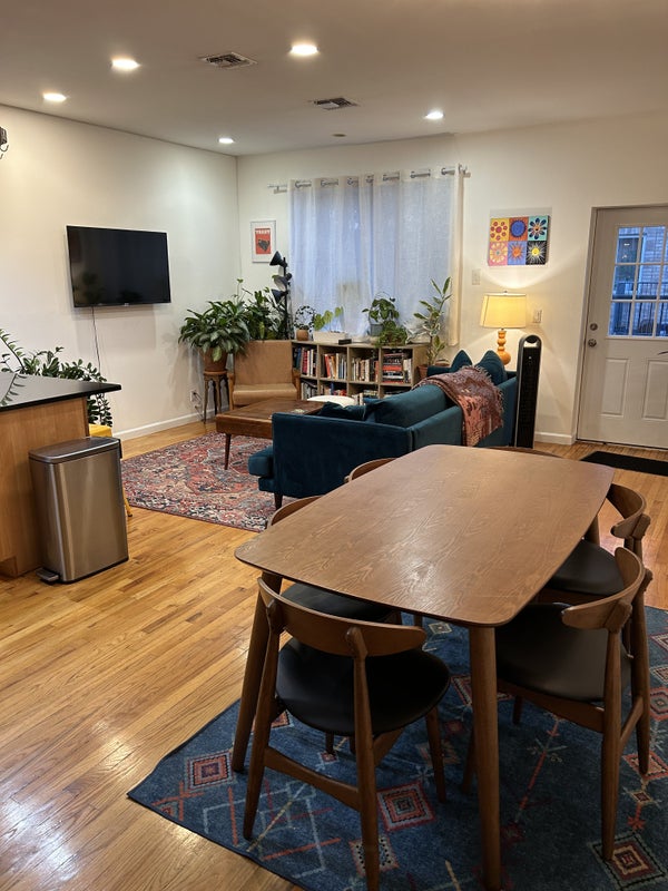 I’m in my late 20s. I’m a graphic designer who works hybrid, in-office 1 day a week and WFH 4 days a week. I’m queer, lefty, friendly, and love plants! I’m looking for roommates who are similarly on the mellow side, pay on time, respect common spaces, enjoy keeping a cozy home, and don’t host large parties (there are lots of families in this community, so we want to be mindful of noise!)
