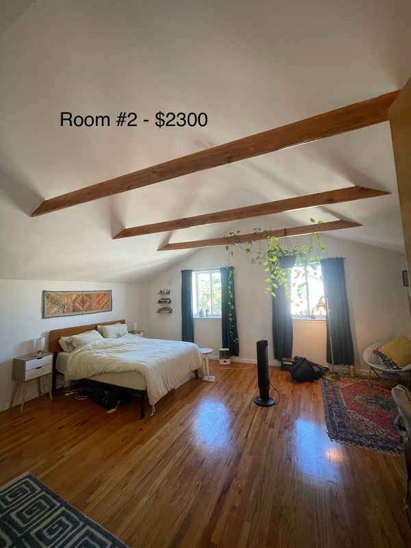 Room #2 - $2300 * HUGE bedroom on top floor, you basically get an entire floor to yourself * Private bathroom upstairs * Views of the Empire State Building * Walk-in closet * Unfurnished, or queen bed frame/mattress and standing desk available to purchase from previous roommate