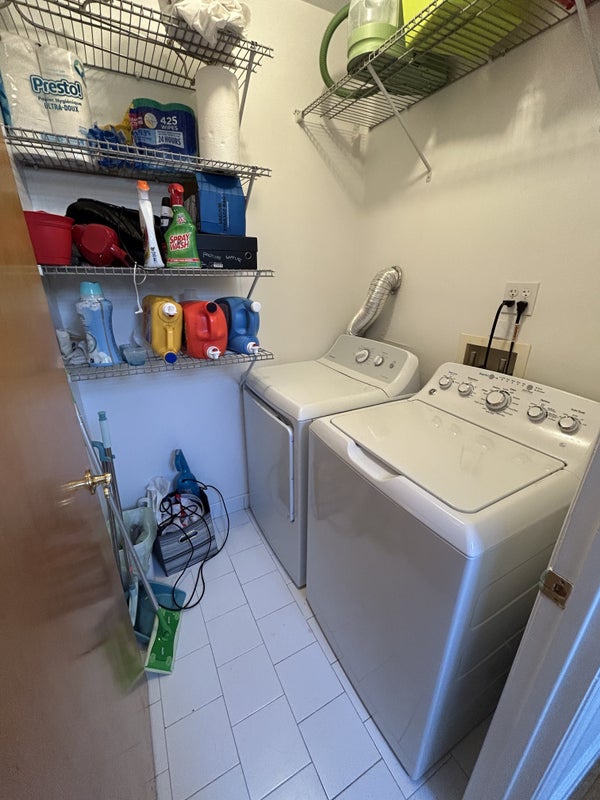 Some details on the apartment: * In unit washer-dryer (in its own separate room upstairs) * 2 full bathrooms, one on each floor * Dishwasher * Central air * Balcony * Two living room areas with couches/TVs in each (one on the first floor, one in a windowless den on the top floor, perfect for movie nights!) * Recessed & dimmable lighting * Separate trash/recycling area for the complex * No pets sadly 😔