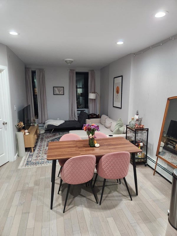 - Large room available on December 1st in a 3BR/1B apartment on Fulton Street, 2 min walk from Kingston-Throop C line subway stop in Bed-Stuy. - Amazing location, 17 mins from Downtown Manhattan along the A/C line, very close to a Blink gym and Super Foodtown. - Room is $1,300/month and all bills are included except for internet (extra $12/month). - Room is 12'5" x 10'2", has an A/C unit and fire escape access. - Apartment is newly renovated and has washer/dryer in unit. - 2 women ages 24 and 27 currently living in the apartment, and prioritizing another woman in our search. - Looking for a clean & quiet roommate, with proof of employment/income 30x the rent & good credit OR a guarantor. - First month's rent and deposit due upon signing of lease. - Message a bit about yourself and let me know about arranging a viewing!