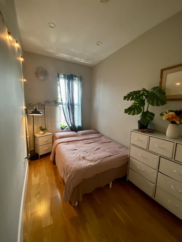 A full-size room with adorable street views and the kind of closet space most NYC renters dream of. Shares a gorgeous oversized bathroom (large window, tree views) with just one other tenant. Dedicated entrance.