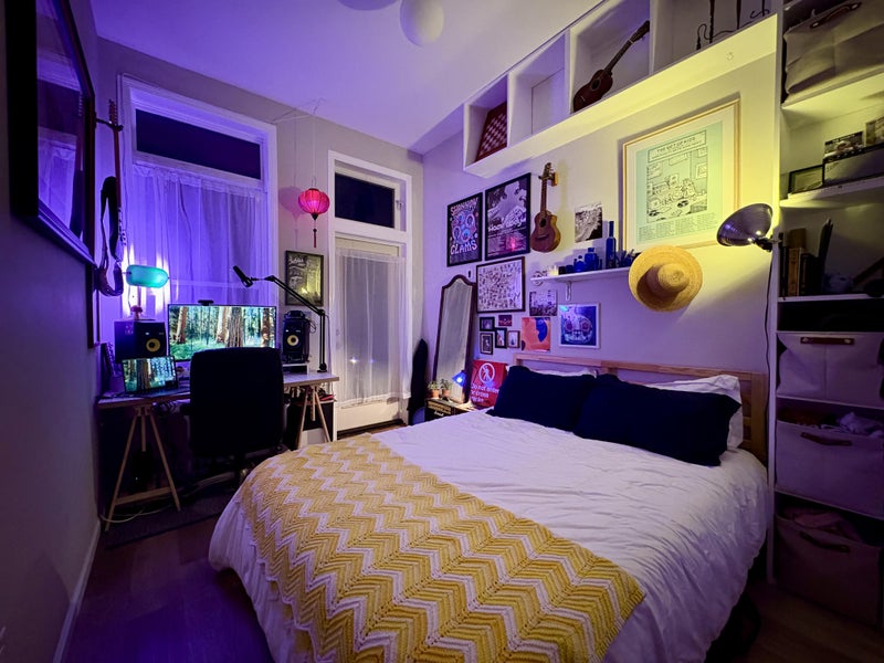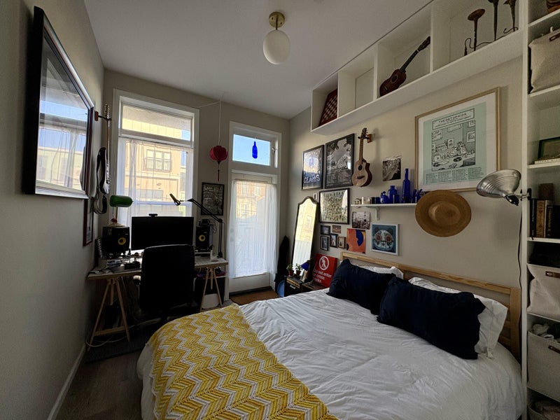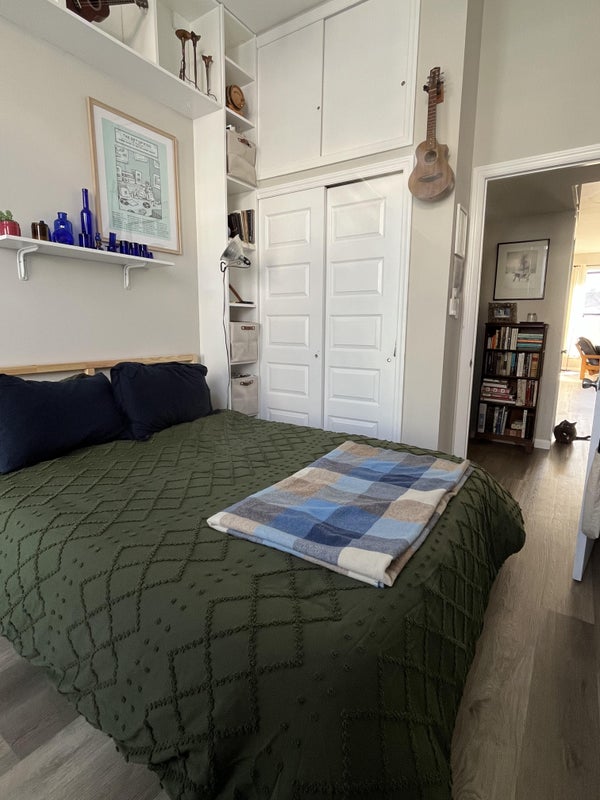 Very comfortable queen size bed. Very large closet space. Plenty of natural light in the whole apartment.