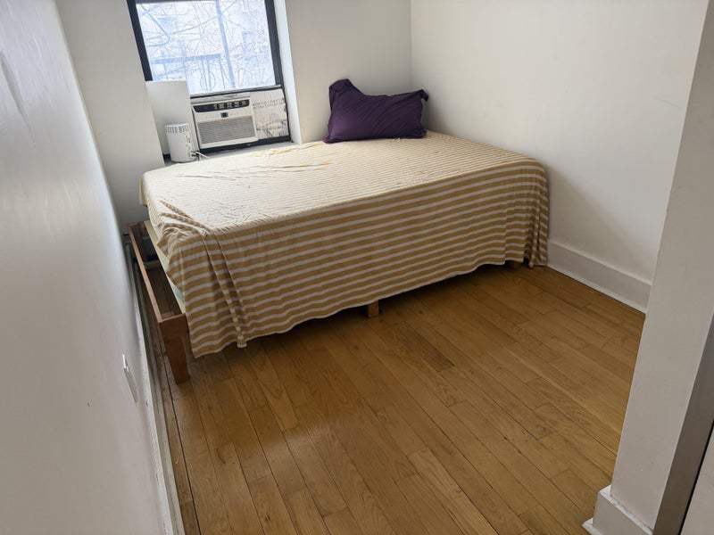 About the apartment/room: Walking distance from many popular bars and restaurants. Also walking distance from the A, C, and G trains as well as the B52,, B15, B38. Room is partially furnished with an air conditioner and a bed frame(bed frame can be removed). The room has a spacious closet. The apartment has one other roommate with bedrooms on opposite sides of the apartment. The apartment comes with one full bath, located closest to your room, and one half bathroom, located closer to my room. This apartment is on the second floor. Common spaces are fully furnished (living room/kitchen). There's a washer and dryer in the building, and a shared backyard. Utilities are not included in the rent. There are currently two cats living in the space that will continue to stay in the space. The building and the apartment are well-maintained. Looking to maintain a calm, peaceful and respectful living space.